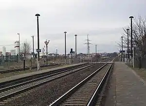 Bernburg-Friedenshall station is a railway station in the Friedenshall district in the municipality of Bernburg, located in the Salzlandkreis district in Saxony-Anhalt, Germany.