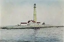 In 1978, two lightkeepers on the island had to retreat from a powerful winter storm. They took shelter in the light chamber while the seas and wind demolished all other structures on the island. The water rose five feet up the tower and dislodged a number of its segments. The next day, they were rescued by helicopter. The tower was repaired and automated, no longer requiring a resident keeper. It is now powered by solar power.
