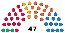 Since the last boundary changes in 2015 the council has comprised 47 councillors representing 24 wards, with each ward electing one, two or three councillors. Elections are held every four years.[18]