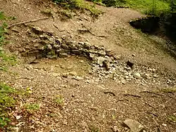 • Tributary, from the left in Wolfsloch to above 450 m (1,480 ft), 1.7 km; originates at about 580 m at the northern foot of the Stöffelberg with ruin of Stöffel's castle ruin