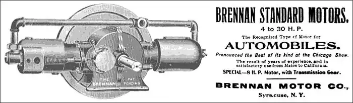 Brennan Motor Manufacturing Company (1897–1972) of Syracuse, New York, was an early manufacturer of automobile engines. From 1902 until 1908, the company produced the Brennan automobile however, after the demise of the automobile enterprise, the company again turned their focus to automobile engines and later marine engines. They were in business for 75 years when the company closed its doors in 1972.[1]