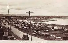By 1873, the township had been surveyed, a number of the allotments sold and a track created connecting Burleigh Heads to Nerang.[20] References to its magnificent beach were starting to appear and reports in newspapers suggested that Burleigh Heads' natural beauty had the potential to eclipse all other seaside locations in the region.[21][22] However, despite the eventual sale of all the allotments in the township, by 1885, there was only one accommodation house run by Fredrick Fowler and very few, if any, privately owned houses.[23] Further subdivisions and land sales took place in Burleigh during 1914,[24] 1915,[25] 1930,[26] 1929 and[27] 1947.[28] Development including restaurants and guest houses to support the increasing interest in bathing that took place in the last years of the 19th century and the first of the 20th century. It has been the centre of beach activities and a camping site for many years.[29] The extent of the town's development can be seen in this 1929 map.[30]