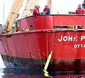 John P. Tully has been employed on joint research voyages with a variety of United States agencies, including the National Oceanic and Atmospheric Administration.[7][8] On 25 October 2001, the research vessel responded to a distress call from the fishing vessel Kella-Lee 13 miles (21 km) north of Cape Scott, Vancouver Island. Due to a violent storm with winds reaching 80 knots (150 km/h), the Coast Guard vessel could not reach the site until the next morning. John P. Tully recovered two survivors from the four crew.[9] In October 2016, after the tugboat Nathan E. Stewart sank near Bella Bella, British Columbia and began to leak oil, John P. Tully and CCGS Bartlett were deployed to help contain the spill.[10]