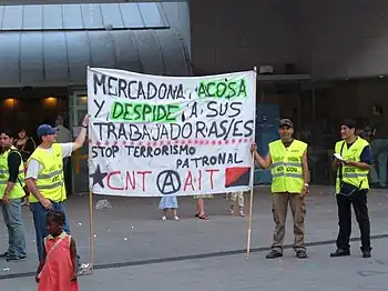 - ↑ (in Spanish) CNT: otra forma de hacer sindicalismo Archived 8 June 2007 at the Wayback Machine ("CNT: another form of doing unionism"), official CNT site. Accessed online 6 January 2007.