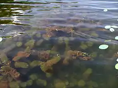 Submerged leaves protruding above the surface