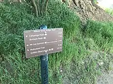 The Aileen Getty Ridge Trail allows hikers to ascend Cahuenga Peak from the east or west approaches.[8] From the west, the trail approaches from Burbank Peak, from the east Mount Lee.