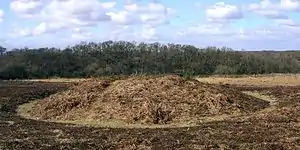A bowl barrow is a type of burial mound or tumulus. A barrow is a mound of earth used to cover a tomb. The bowl barrow gets its name from its resemblance to an upturned bowl. Related terms include cairn circle, cairn ring, howe, kerb cairn, tump and rotunda grave.[1]