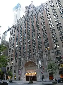 - ↑ Bergman, Edward F. The spiritual traveler: New York City: the guide to sacred spaces and ... HiddenSpring, 2001, ISBN 978-1-58768-003-8 pp194-105. Notes its history and that it is in a 16 story church/apartment building/hotel, owned by the church. Retrieved November 20, 2009