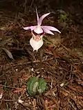 Calypso bulbosa var. speciosa (Schltr.) MakinoJapan, China (Gansu, Jilin, Nei Mongol, Sichuan, Tibet, Yunnan)[3]