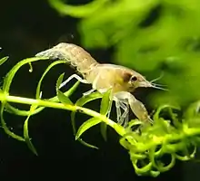 The Cambarellus diminutus, known as the Least Dwarf Crayfish, is in the subgenus Pandicambarus of the genus Cambarellus,[4] this animal is typically 1–2 cm in size[5] and an omnivore that typically feeds on anything but should be fed a diet of sinking pellet. The Least Dwarf Crayfish is a freshwater animal that can be found from Mississippi, Alabama, and southern Illinois[6] and adaptable to slight changes in water condition, and capable of year-round breeding[5]