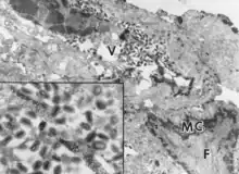 - ↑ Pacchioni, S; Volonté, L.; Zanotto, C.; Pozzi, E.; De Giuli Morghen, C.; Radaelli, A. (June 2010). "Canarypox and fowlpox viruses as recombinant vaccine vectors: an ultrastructural comparative analysis". Archives of Virology. 155 (6): 915–24. doi:10.1007/s00705-010-0663-7. PMID 20379750. S2CID 3094141.