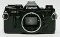 The Canon AE-1 is a 35 mm single-lens reflex (SLR) film camera for use with interchangeable lenses. It was manufactured by Canon Camera K. K. (today Canon Incorporated) in Japan from April 1976 to 1984. It uses an electronically controlled, electromagnet horizontal cloth focal plane shutter, with a speed range of 2 to 1/1000 second plus Bulb and flash X-sync of 1/60 second. The camera body is 87 mm tall, 141 mm wide, and 48 mm deep; it weighs 590 g. Most are black with chrome trim, but some are all black.