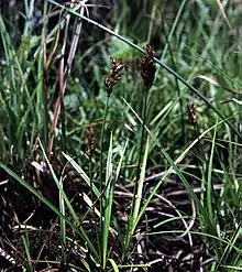 Carex pansa is a species of sedge known by the common name sand dune sedge. It is native to coast of western North America from British Columbia to California, where it grows in dunes and other sandy habitat. This grasslike sedge produces sharply triangular stems up to about 40 centimeters tall from a network of thin, long, coarse rhizomes. The inflorescence is a cluster of several spikes of dark brownish flowers. The plant sometimes produces only male or female flowers in its inflorescences, but not both. This sedge is sometimes used as a grass substitute in local landscaping schemes.[1][2]