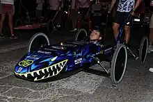The Carrera Autopodistica is an annual human-powered land vehicle racing competition that takes place in September in Castel San Pietro Terme near Bologna, Italy. The vehicles involved are unique, soapbox-like cars driven by a pilot and propelled by "spingitori", or pushing men. Every year this competition attracts not only local people but also foreigners, and recently the peculiarity of the race has caught the attention of national television networks -private and public-, increasing the visibility of Castel San Pietro Terme.[1]