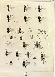 - ↑ Loew, H. (1873). Systematische Beschreibung der bekannten europäische n zweiflugeligen Insecten. Von Johann Wilhelm Meigen. Zehnter Theil oder vierter Supplementband. Beschreibung europäischer Dipteren. Dritter Band. Halle: H.W. Schmidt. pp. viii + 320.