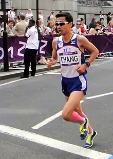 ![]() Chang Chia-che in the marathon at the 2012 Summer Olympics in London | |