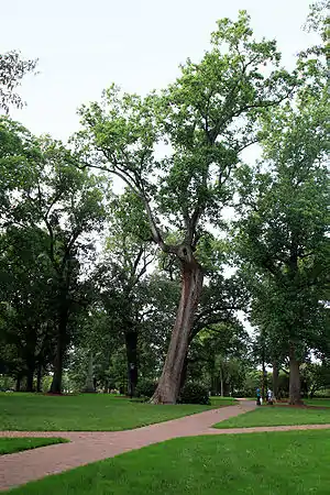 Four in ten Chapel Hillians were enslaved at the start of the Civil War, and about half of the town was Black.[14] In April 1865, as the war ended, the 9th Michigan Cavalry rode into Chapel Hill and occupied the university and the town for more than two weeks.[15]