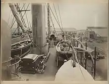 Commanded by American soldier of fortune Captain Philo Norton McGiffin[9] and his British chief engineer Purvis[10] the two Chinese manned cruisers sailed out of the Tyne River on 9 August, and stopped in Plymouth Sound two days later where Admiral Ding Ruchang joined them to take command of the ships for the journey to China.[5] Following their arrival on 20 October in Hong Kong,[11] they toured Canton (now Guangzhou) and Shanghai, before travelling to the Taku Forts. Chaoyong was boarded by Hongzhang, and the two cruisers took the diplomat to inspect the dredging of the port at Taku (now the Port of Tianjin). Both ships were assigned to the Beiyang Fleet in the north, and Ruchang was placed in command.[6]
