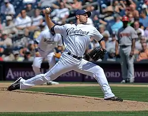 On July 13, 2003, he was traded to the San Diego Padres for Matt Herges. On April 5, 2005, he was suspended 15 games for testing positive for steroids while pitching in the minor leagues.[3] Later that season, he was called up from the Triple-A Portland Beavers. He emerged as a vital figure in middle relief, not allowing a home run in 47.2 innings.