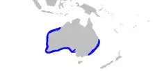 The coffin ray has a wide but disjunct distribution in tropical and warm-temperate Australian waters. The western part of its range extends from Gulf St Vincent in South Australia to Broome in Western Australia, and the eastern part from Eden in New South Wales to Heron Island in Queensland. It does not occur off Victoria or Tasmania. This common, bottom-dwelling species is typically found close to shore, no deeper than 80 m (260 ft), though it has been recorded from as deep as 240 m (790 ft).[1][5] In 1910, the trawler Endeavour caught several coffin rays at depths ranging from 47 to 120 fathoms (86–219 metres).[8] The coffin ray favors habitats with sandy or muddy bottoms, including beaches, estuaries, and bays, and can also be found over seagrass as well as on and around rocky and coral reefs.[9][10]