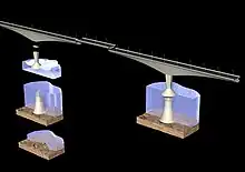 Extremely durable high-grade concrete and reinforcing steel were used throughout construction of the pre-cast components, with the estimated lifespan of the bridge being in excess of 100 years. The reinforced concrete structure was also designed to withstand iceberg impacts, as a deflection cone encircles each pillar at the point when it meets the water surface that would cause an iceberg to bounce off. Their sheer size and weight required strengthening of the soil base during the design and preparation work for the Amherst Head staging facility, as well as the use of a crawler transport system to move pieces from fabrication to storage, and onto a nearby pier. These crawler transports, using specially designed teflon-coated concrete rails, earned the nickname lobsters from workers.