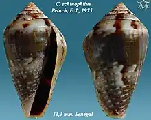- ↑ Monnier, E. (2012). "Conus echinophilus". IUCN Red List of Threatened Species. 2012: e.T192487A2102864. doi:10.2305/IUCN.UK.2012-1.RLTS.T192487A2102864.en. Retrieved 19 November 2021.