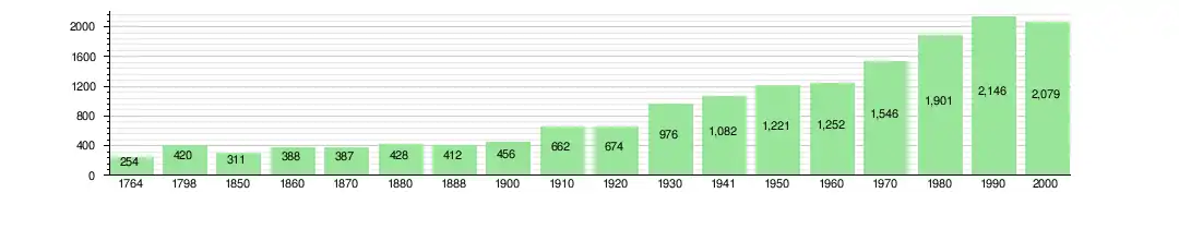 Corseaux has a population (as of December 2020) of 2,315.[6] As of 2008, 22.6% of the population are resident foreign nationals.[7] Over the last 10 years (1999–2009 ) the population has changed at a rate of -0.2%. It has changed at a rate of 4.9% due to migration and at a rate of -5.1% due to births and deaths.[8]
