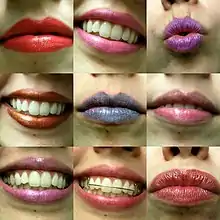 The red color of modern lipstick can come from synthetically derived pure iron oxide (common iron rust), however most leading brands use the more economical synthetic colors. In the United States, every batch of synthetic dye and pigment must have a sample sent to the US FDA for testing and certification that the batch is pure and its contaminants are below the levels specified by law.[12] Synthetic colors are listed in the ingredients as a code (e.g.: F &D red no 6) and may contain up to 10 parts per million of lead / 3 parts per million of arsenic.[13] There is some controversy over the presence of these trace ingredients, especially since makeup worn on the lips is not just absorbed through the skin, but also swallowed with drinking and eating. Since lowering these levels would make the production and sale of practically all lipstick illegal, and since the FDA has determined that the existing levels are safe, the cosmetic industry continues to produce and sell lipstick.[14]