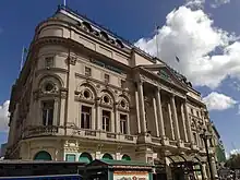 The London Pavilion was at the corner of Coventry Street with Piccadilly Circus and Shaftesbury Avenue. It was established in 1861 as an extension to the Black Horse Inn, hosting music hall events. It was demolished in 1885 and rebuilt and reopened by Edmund Villiers, becoming a theatre in 1918. It subsequently became a cinema, closing in 1982.[11] The site is now part of the Trocadero Shopping Centre.[1]