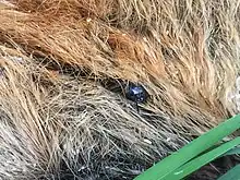 Creophilus oculatus is a carrion beetle, often been collected from carrion, carrion-baited pitfall traps, or rotting plants, to which it is attracted by smell.[4][9] The adults are one of the first insect species to arrive at a dead animal. Rather than feed directly on carrion, they consume carrion-feeding insects, especially the maggots of blowflies, and have been observed tearing open flies with their curved jaws to feed on their eggs.[7] These beetles discharge an unpleasant-smelling white substance—described as smelling like "rotten fish"[9]—from glands on their abdomen when threatened.[4]