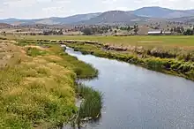 The Crooked River is a tributary, 125 miles (201 km) long, of the Deschutes River in the U.S. state of Oregon.[4] The river begins at the confluence of the South Fork Crooked River and Beaver Creek. Of the two tributaries, the South Fork Crooked River is the larger and is sometimes considered part of the Crooked River proper. A variant name of the South Fork Crooked River is simply "Crooked River".[1][3] The Deschutes River flows north into the Columbia River.