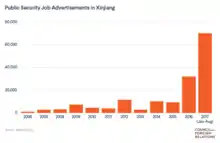 In 2017, 73% of foreign journalists in China reported being restricted or prohibited from reporting in Xinjiang, up from 42% in 2016.[85]
