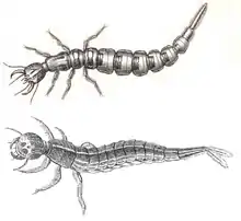 Larvae have a frontal tooth on the head and lack cerci. North American species can grow up to 80 mm long.[4]