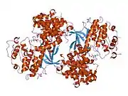 - ↑ PDB: 1FIN; Jeffrey PD, Russo AA, Polyak K, Gibbs E, Hurwitz J, Massagué J, Pavletich NP (July 1995). "Mechanism of CDK activation revealed by the structure of a cyclinA-CDK2 complex". Nature. 376 (6538): 313–20. Bibcode:1995Natur.376..313J. doi:10.1038/376313a0. PMID 7630397. S2CID 4361179.