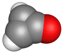 Cyclopropenone is an organic compound with molecular formula C3H2O consisting of a cyclopropene carbon framework with a ketone functional group. It is a colorless, volatile liquid that boils near room temperature.[1] Neat cyclopropenone polymerizes upon standing at room temperature.[2] The chemical properties of the compound are dominated by the strong polarization of the carbonyl group, which gives a partial positive charge with aromatic stabilization on the ring and a partial negative charge on oxygen. It is an aromatic compound.[3][4]