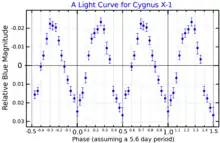- ↑ Kemp, J. C.; Karitskaya, E. A.; Kumsiashvili, M. I.; Lyutyi, V. M.; Cherepashchuk, A. M. (April 1987). "Longperiod Optical Variability of the CYGNUS-X-1 System". Soviet Astronomy. 31 (2): 170. Bibcode:1987SvA....31..170K. Retrieved 27 December 2021.
