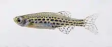 Danio tinwini, commonly called gold-ring danio, is a newly discovered species of Danio from Myanmar. It is also referred to as Danio sp. "TW02". It is a tiny gold fish whose body and fins are covered with blue spots. It has also been referred to as Danio sp "Ringlet" or Danio sp "Blue Ring". It has been described by Kullander and Fang,[1] based on collection by Mr U Tin Win, hence its species name. It is known only from the Mogaung Chaung (Mogaung stream), Myitkyina District, Kachin State, northern Myanmar. This is a tributary of the Irrawaddy River.