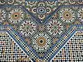 The main entrance of the building leads to a vast rectangular courtyard around which the building is centered. The courtyard is surrounded by galleries and by the two main wings of the building are at its eastern and western ends. The courtyard floor is decorated at its west and east ends with colorful zellij mosaic tilework across its floor and around its ornamental fountains.[5][2] The galleries at the east and west ends of the courtyard consist of large horseshoe arches in brick, while the galleries to the north and south of the central garden are made of painted wood. Some of the other rooms around the palace are also decorated with zellij and painted woodwork.[2]