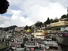 At the time of the 2011 census, 39.88% of the population spoke Nepali, 26.51% Bengali, 10.95% Hindi, 6.17% Rajbongshi, 5.38% Sadri, 2.52% Kurukh, 1.50% Bhojpuri and 1.15% Santali as their first language. 1.04% of the population recorded their language as 'Others' under Bengali.[17] According to 1951 Census, about 26% of the population in the three hill sub-divisions of Darjeeling district (including Kalimpong) spoke Nepali as mother language.[18] Other languages formerly spoken in the hills included Rai, Limbu, Tamang, Magar, Gurung, and Newar.
