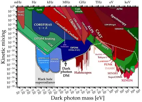 - ↑ Arias, Paola; Cadamuro, Davide; Goodsell, Mark; Jaeckel, Joerg; Redondo, Javier; Ringwald, Andreas (2012-06-08). "WISPy Cold Dark Matter". Journal of Cosmology and Astroparticle Physics. 2012 (6): 013. arXiv:1201.5902. Bibcode:2012JCAP...06..013A. doi:10.1088/1475-7516/2012/06/013. ISSN 1475-7516. S2CID 55566455.