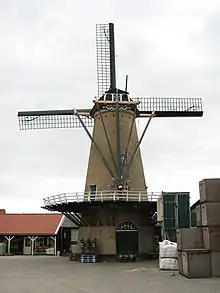 Ouddorp is a village on the northwestern tip of the island of Goeree-Overflakkee in Zeeland, with a 14th-century church in the marketplace.[1] The precursor of the mill was built around 1600. The old mill most likely had two pairs of millstone. In 1844 the Voogd family decided to close the old mill and replace it with a round stone mill with three pairs of stones.