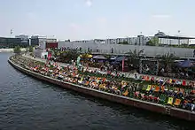 The hiring out of deckchairs, on an hourly or daily basis, became established in British seaside resorts, often for use on piers and promenades, in the early 20th century. They were also often used in large public parks such as Hyde Park, and for spectators at informal sporting events such as local cricket matches. With the widespread availability of lighter and even more portable forms of seating later in the century, the use of deckchairs declined.[5] In one of the largest English resorts, Blackpool, 68,000 deckchairs were rented out in 2003, at £1.50 a day, but tourism officers suggested that they should be phased out, except on the piers themselves, because they were a reminder of the era of "cloth caps", and had "had their time in the 50s and 60s".[8]