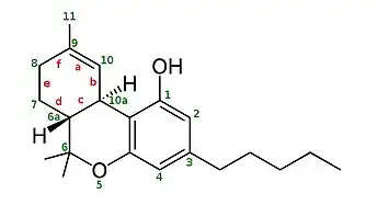 - ↑ Chambers M. "ChemIDplus - 0005957755 - HCAWPGARWVBULJ-IAGOWNOFSA-N - delta-8-Tetrahydrocannabinol - Similar structures search, synonyms, formulas, resource links, and other chemical information". chem.nlm.nih.gov. Retrieved 13 June 2021.
