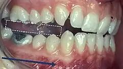A deflective contact is a contact that diverts the mandible from its intended movement.[12] An example of this is when the mandible is deflected into ICP by the RCP-ICP slide, which path is determined by the deflective tooth contacts. This is often involved in function (e.g. chewing), however in some cases these deflective contacts can be damaging and may lead to pain around the tooth (often associated with bruxism).[21] However, some patients may be totally unaware of similar deflective contacts suggesting that it is the patient's adaptability rather than the contact that may influence the patient's presentation.