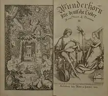 Des Knaben Wunderhorn: Alte deutsche Lieder (German; "The boy's magic horn: old German songs") is a collection of German folk poems and songs edited by Achim von Arnim and Clemens Brentano, and published in Heidelberg, Baden. The book was published in three editions: the first in 1805 followed by two more volumes in 1808.