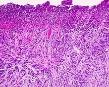 Desmoplastic melanoma is a rare cutaneous condition characterized by a deeply infiltrating type of melanoma[2]: 696 with an abundance of fibrous matrix.[3] It usually occurs in the head and neck region of older people with sun-damaged skin.[3] Diagnosis can be difficult as it has a similar appearance to sclerosing melanocytic nevi as well as some nonmelanocytic skin lesions such as scars, fibromas, or cysts.[3]
