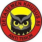 Counterterrorism Special Detachment 88 (Indonesian: Detasemen Khusus 88 Antiteror),[4] or Densus 88, is a tier one Indonesian National Police counter-terrorism squad formed on 30 June 2003, after the 2002 Bali bombings. It is funded, equipped, and trained by the United States through the Diplomatic Security Service's Antiterrorism Assistance Program[5] and Australia.[6]