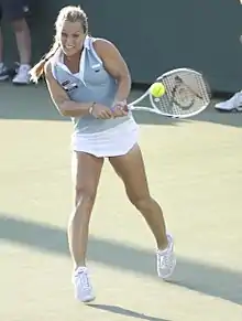 Dominika Cibulková[1] (Slovak pronunciation: [ˈdɔminika ˈtsibulkɔʋaː]; born 6 May 1989)[2][3] is a Slovak former professional tennis player.[4] She is the 2016 WTA Finals champion, becoming the fourth player (after Serena Williams in 2001, Maria Sharapova in 2004 and Petra Kvitová in 2011) to win the tournament on her debut. She won eight WTA Tour singles titles and two on the ITF Circuit.
