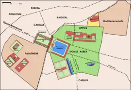 One of the main buildings is thought to be on the western side of the Oppian Hill under the Baths of Trajan.[4]: 237
