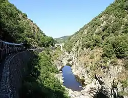 The Doux (French pronunciation: [du] ⓘ) is a tributary of the Rhône in the Haute-Loire and Ardèche departments, France. It is 70 km (43 mi) long.[1] It begins in the Massif Central and joins the Rhône in Tournon-sur-Rhône. It passes through the town Lamastre. The Chemin de fer du Vivarais heritage railway from Tournon-sur-Rhône to Lamastre runs through the Doux valley.